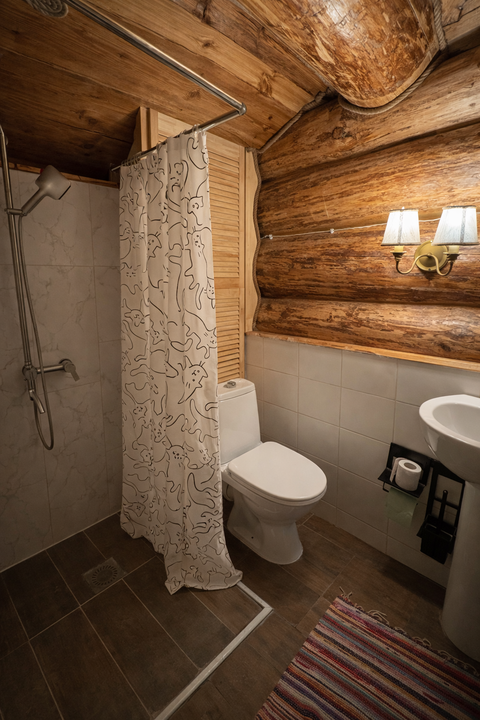 Ванная комната, душевая и санузел, два полотенца банных и одно для рук, два одноразовых комплект мыла и шампуня.